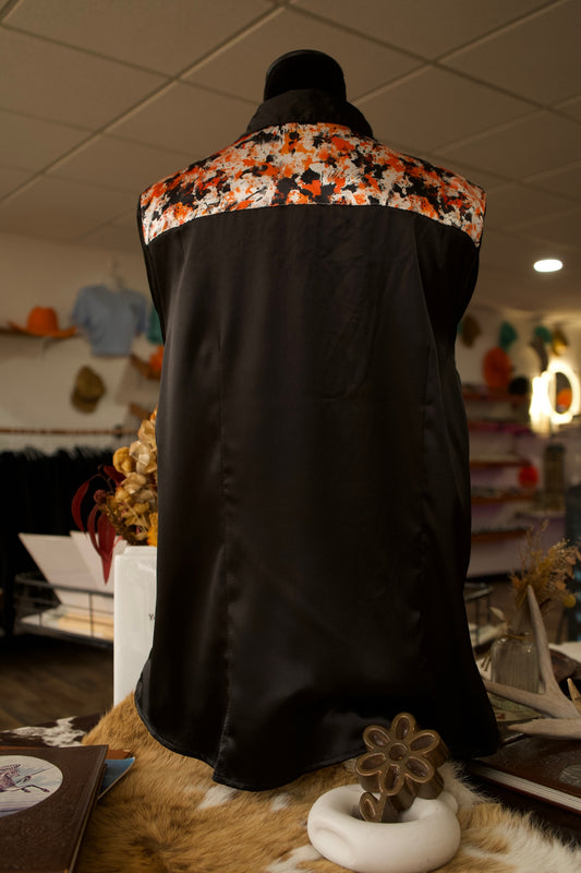 2XL - Paintbrush Floral on Hot Pink Satin Button Down