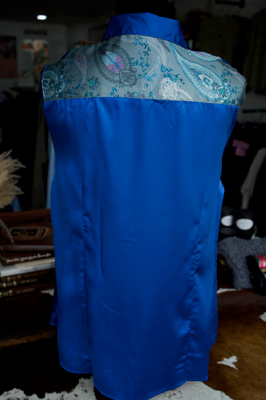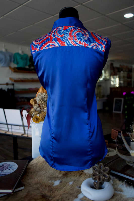 2XL - Royal Blue Satin w/ Patriotic Tie Dye Button Down