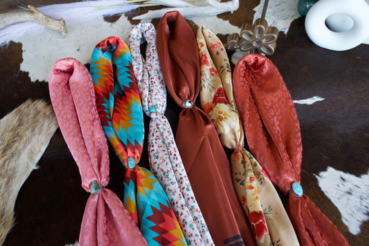 Robins Egg Blue w/ Cream & Rust Flowers DS Wild Rag