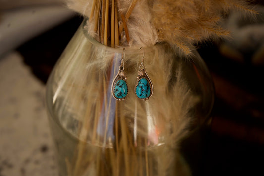 Vintage Dainty Turquoise Stud Earrings w/ Feather Dangles