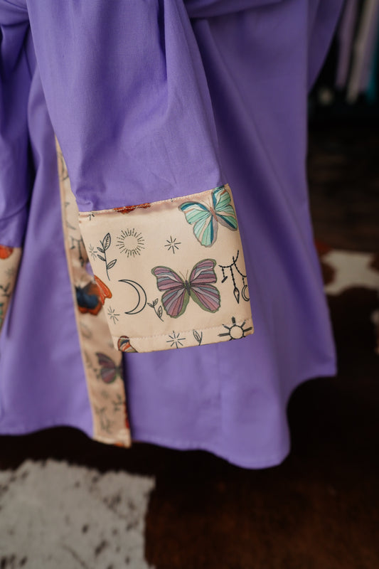 XL - Floral Weenie Dawg on Purple Cotton Button Down