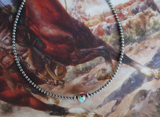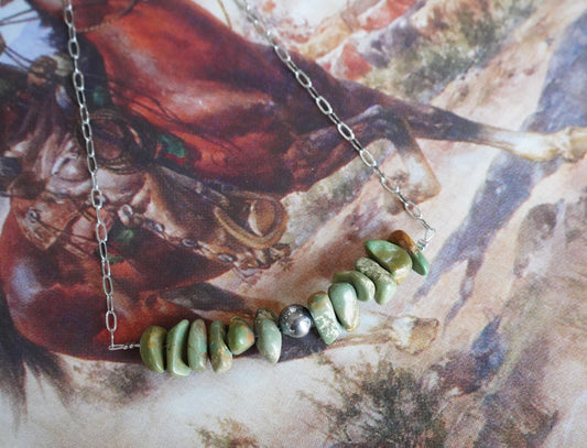 Turquoise Chips w/ Sterling Silver Pearl Necklace
