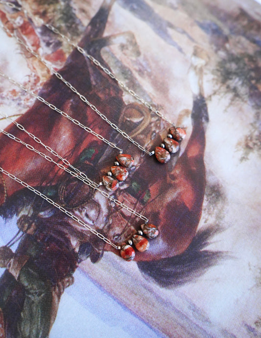 Dainty Turquoise & Orange Spiny Bars on Paperclip Chain Necklaces