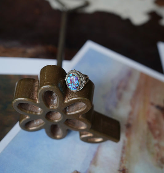 Turquoise Oval Flower Rings - Adj