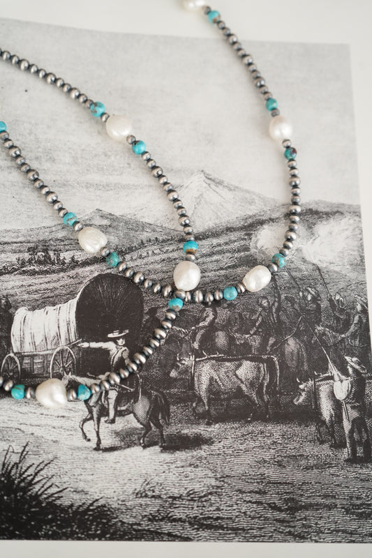 Sterling Silver Pearls w/ Disc & Turquoise Necklace - 18â