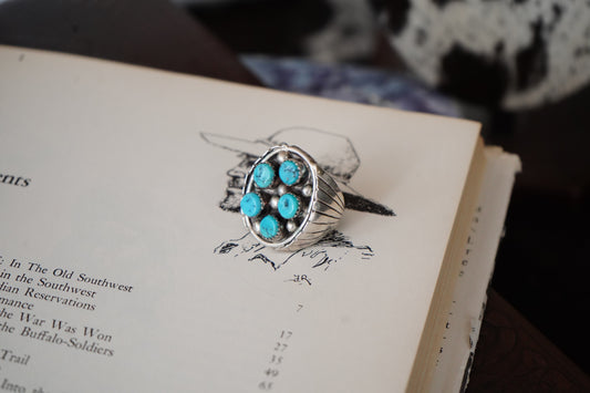 Vintage 4 Stone Turquoise w/ Silver Beads Mens Ring - Sz 9