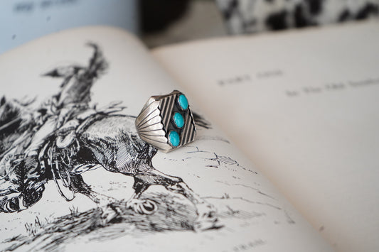 Vintage 3 Stone Turquoise Mens Ring - Sz 10