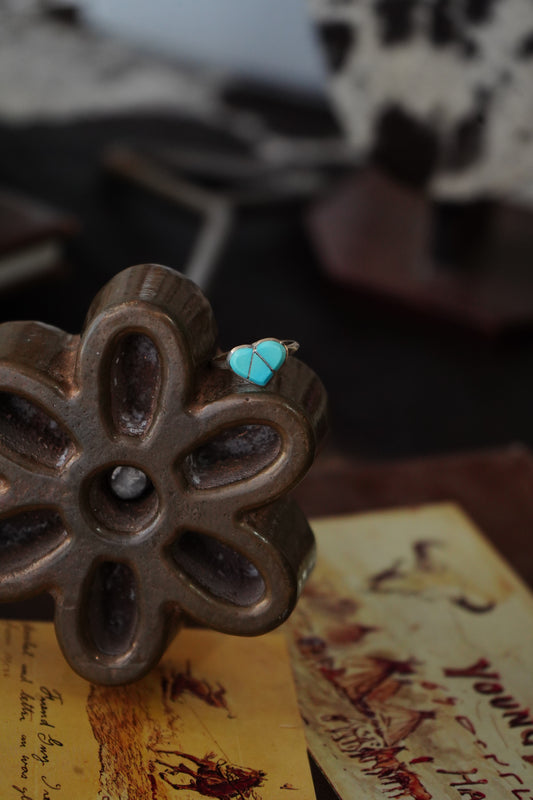 Vintage Turquoise, Silver Scrolls & CZ Ring - 6.5