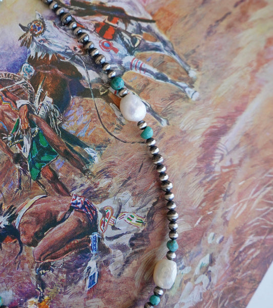 Sterling Silver Pearls w/ MOP & Turquoise Necklace - 16”