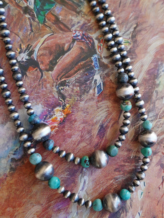 Graduated Sterling Silver Pearls w/ Turquoise Necklaces