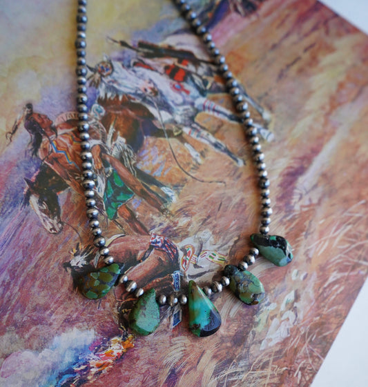 Turquoise Teardrops on Sterling Silver Pearls Necklace - 18”