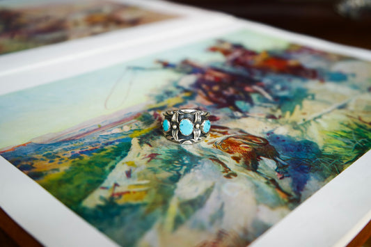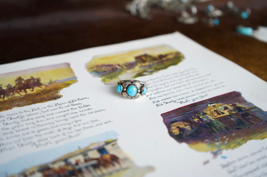 Turquoise Silver Leafs Band Ring - Sz 9.5 & 7
