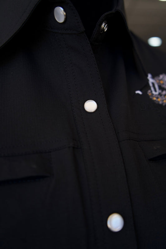 Daisy Gang Fishing Shirt Pearl Snaps - Black Long Sleeves