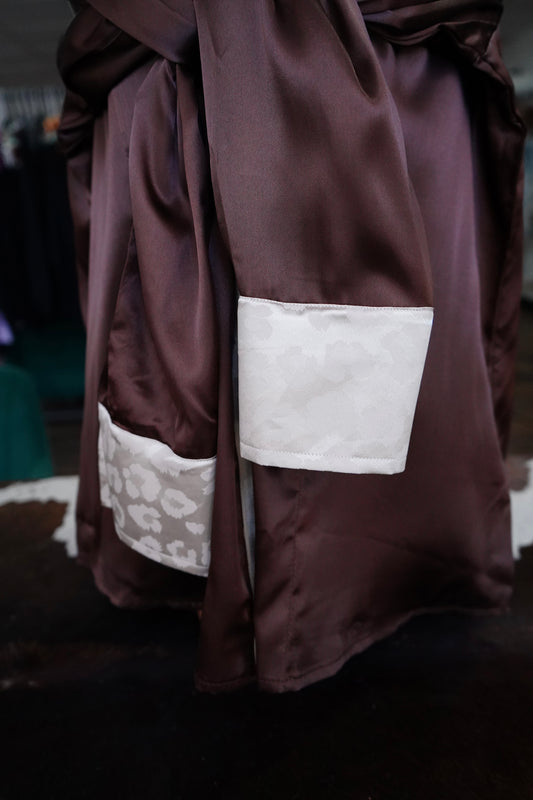 3XL - Cream Jacquard Cheetah on Brown Satin Button Down