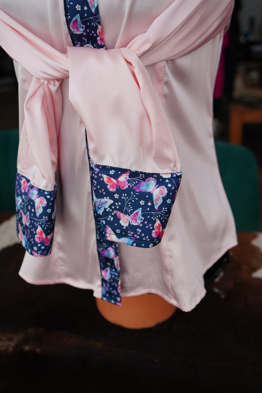 L - Pink Butterflies on Light Pink Satin Button Down