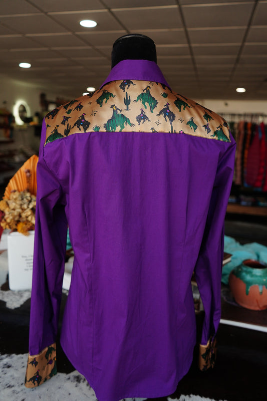 XL - Purple Cotton Button Down w/ Space Cowboy
