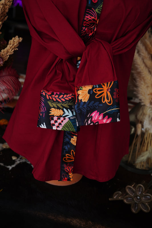 XL - Burgundy Cotton w/ Black Wildflowers Button Down