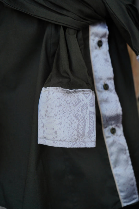 XL - Olive Cotton w/ Beige Snakeskin Button Down