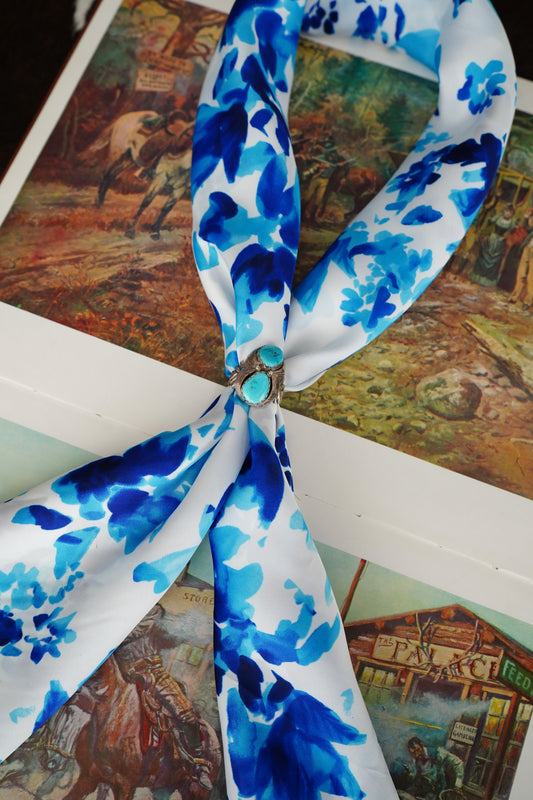 Robins Egg Blue w/ Cream & Rust Flowers DS Wild Rag