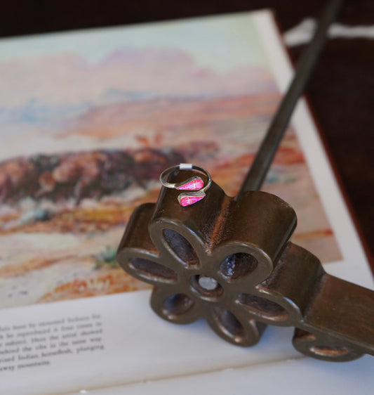 Thomas Yazzie White Opal w/ Beaded Band Ring - Sz 6