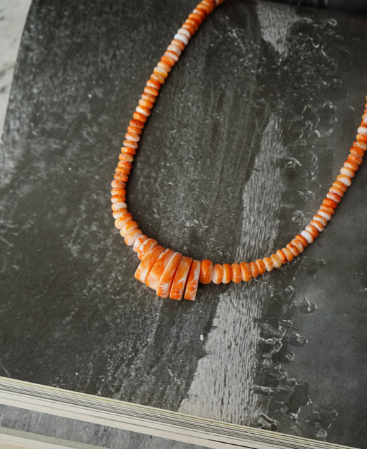 Orange Spiny w/ Sterling Silver Pearls Necklace