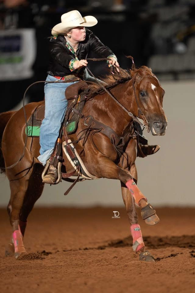 Hey guys! I’m Trystan Lyons 26 years old and new to Weatherford, Texas! I’m originally from Indiana but decided to move where there was a bigger rodeo presence. I own 2 barrel horses currently, my gelding is On The money Red and Easily Smashed, he’s 17 years old and I’ve owned him since he was 5. My mare is old foundation bred and 9. She also is my breakaway horse! I work at a trucking company in dispatch and own a business making turquoise jewelry! I’m obsessed with all things Daisy If You Do Co. like her turquoise and custom shirts but what inspires me the most is the Ride At Dawn non profit and Rachel’s mission to help children and women get out of horrible situations. I’m so excited to see where the 2026 year takes us!