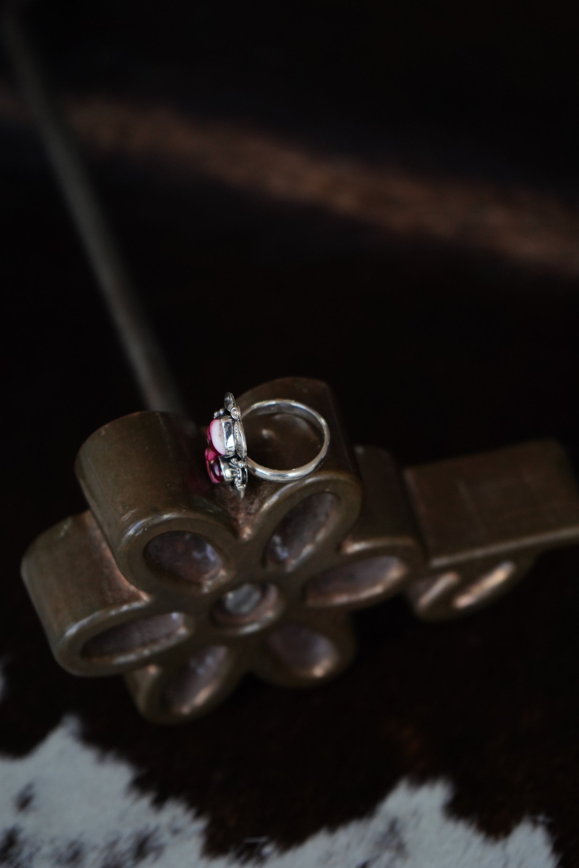 2 Stone Rose Dahlia Teardrop Ring - Adj