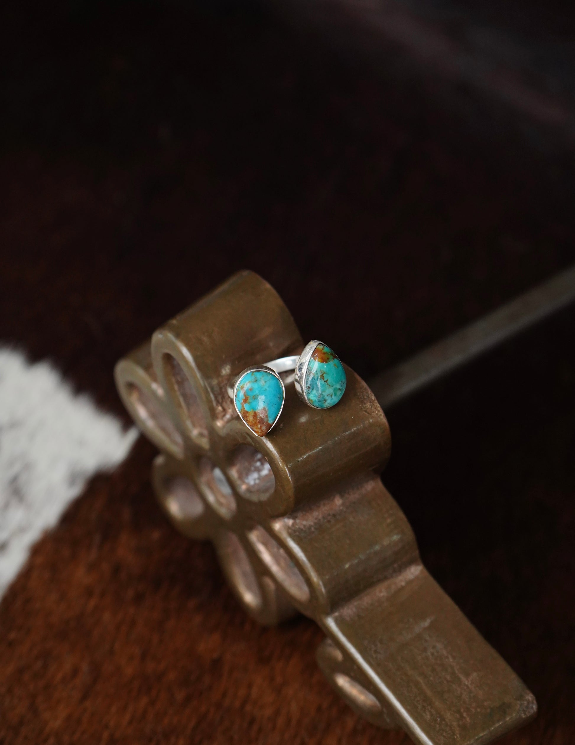 2 Stone Teardrop Turquoise Ring - Adj