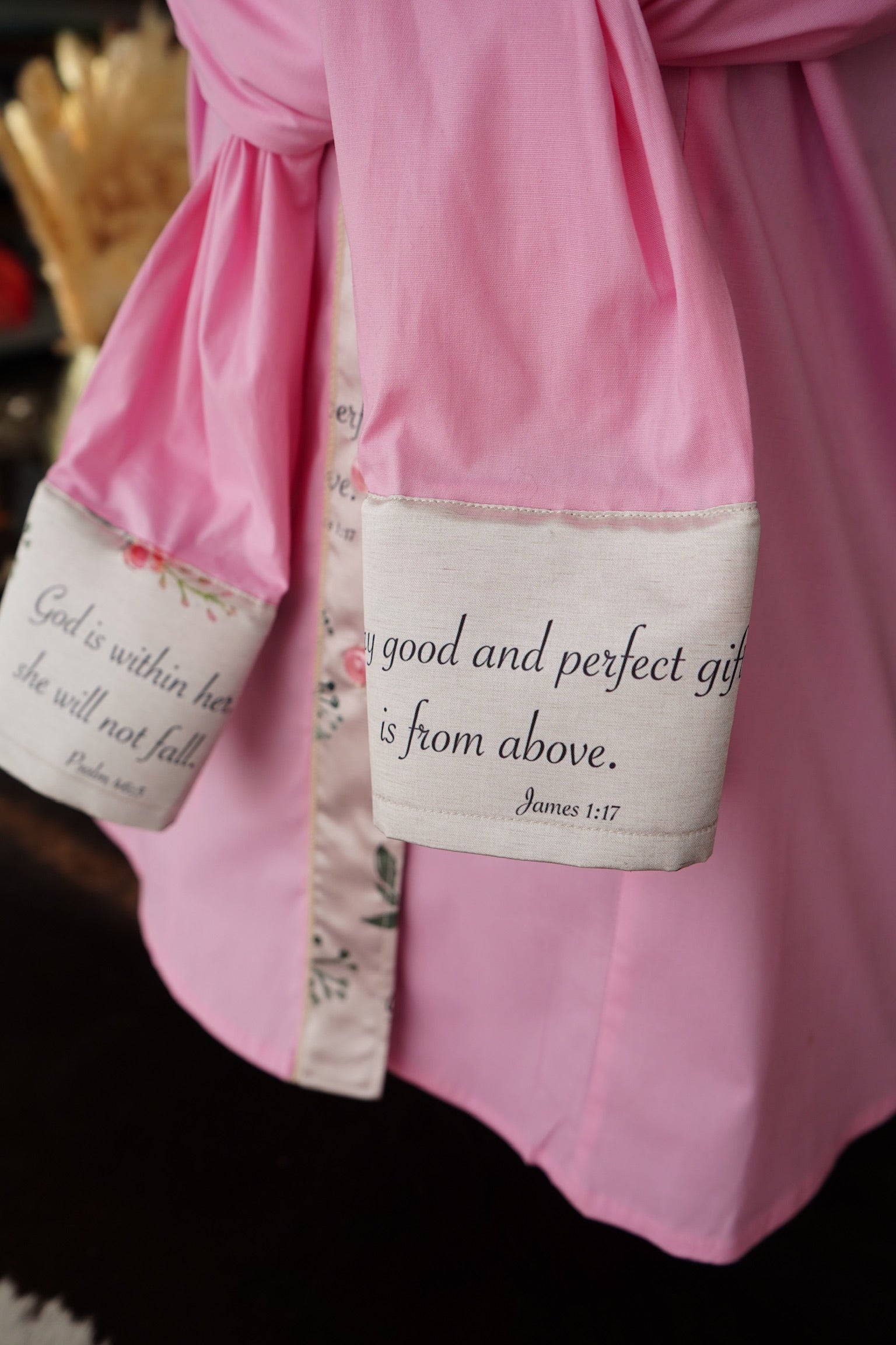 2XL - Tan Verses on Light Pink Cotton Button Down