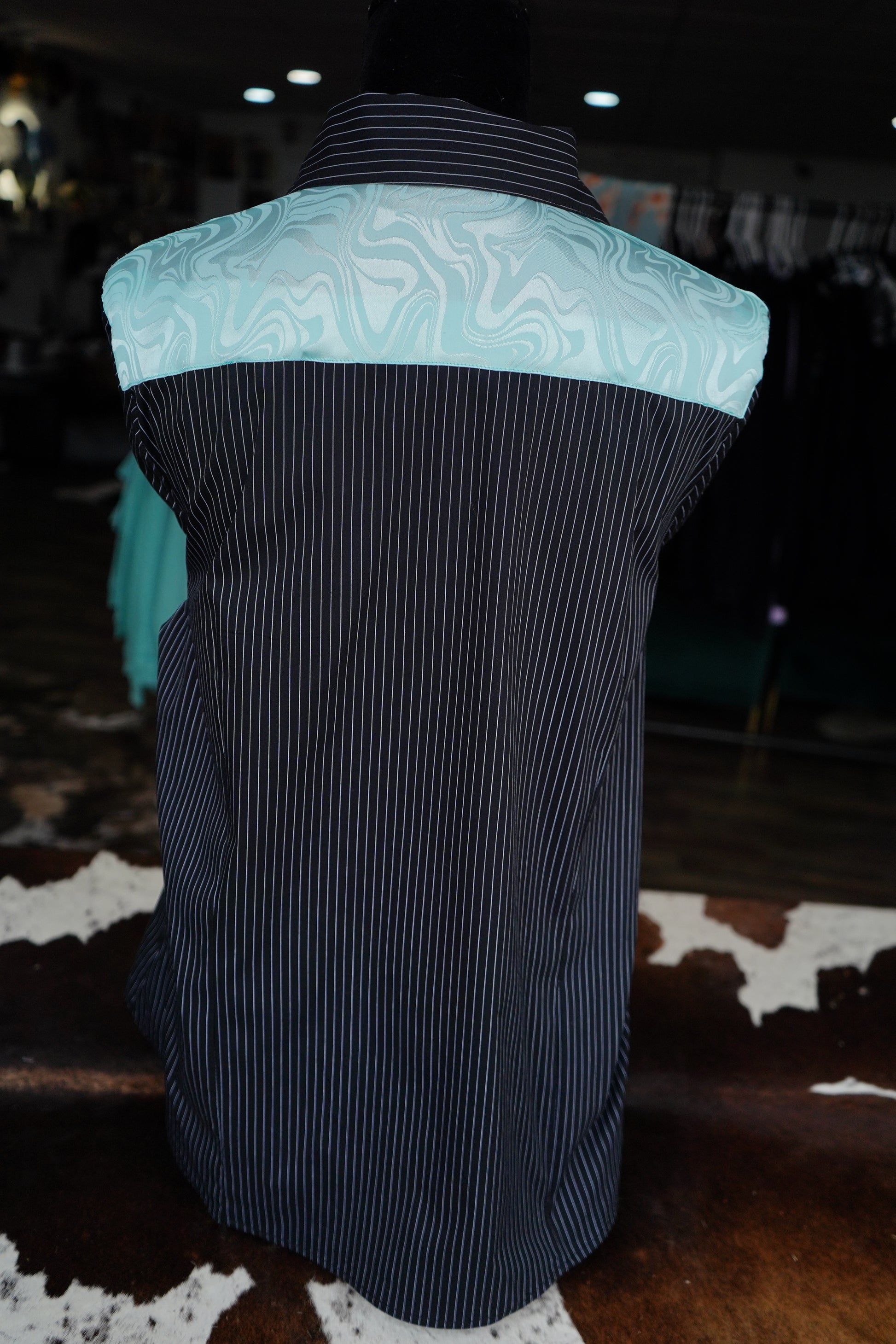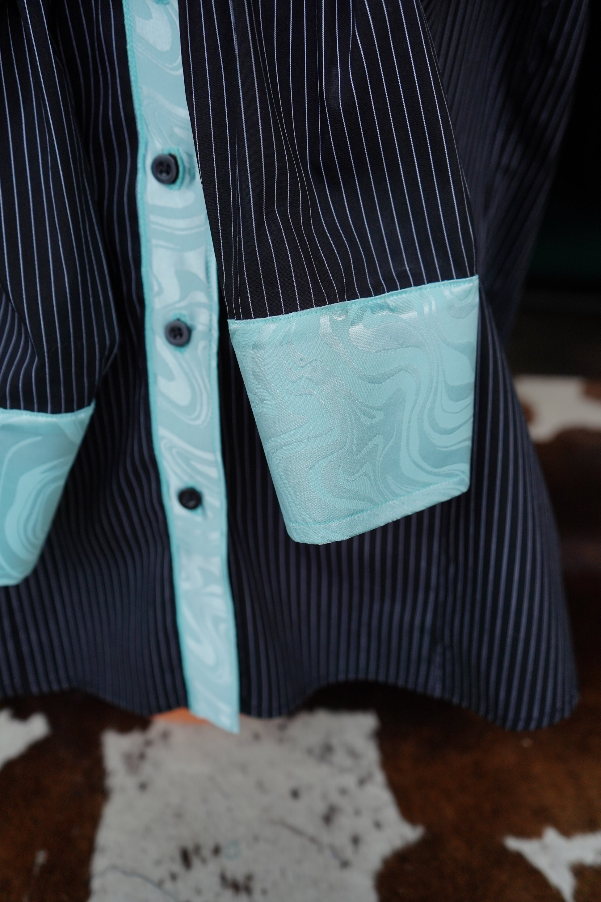 2XL - Teal Groovy Jacquard on B/W Striped Cotton Button Down
