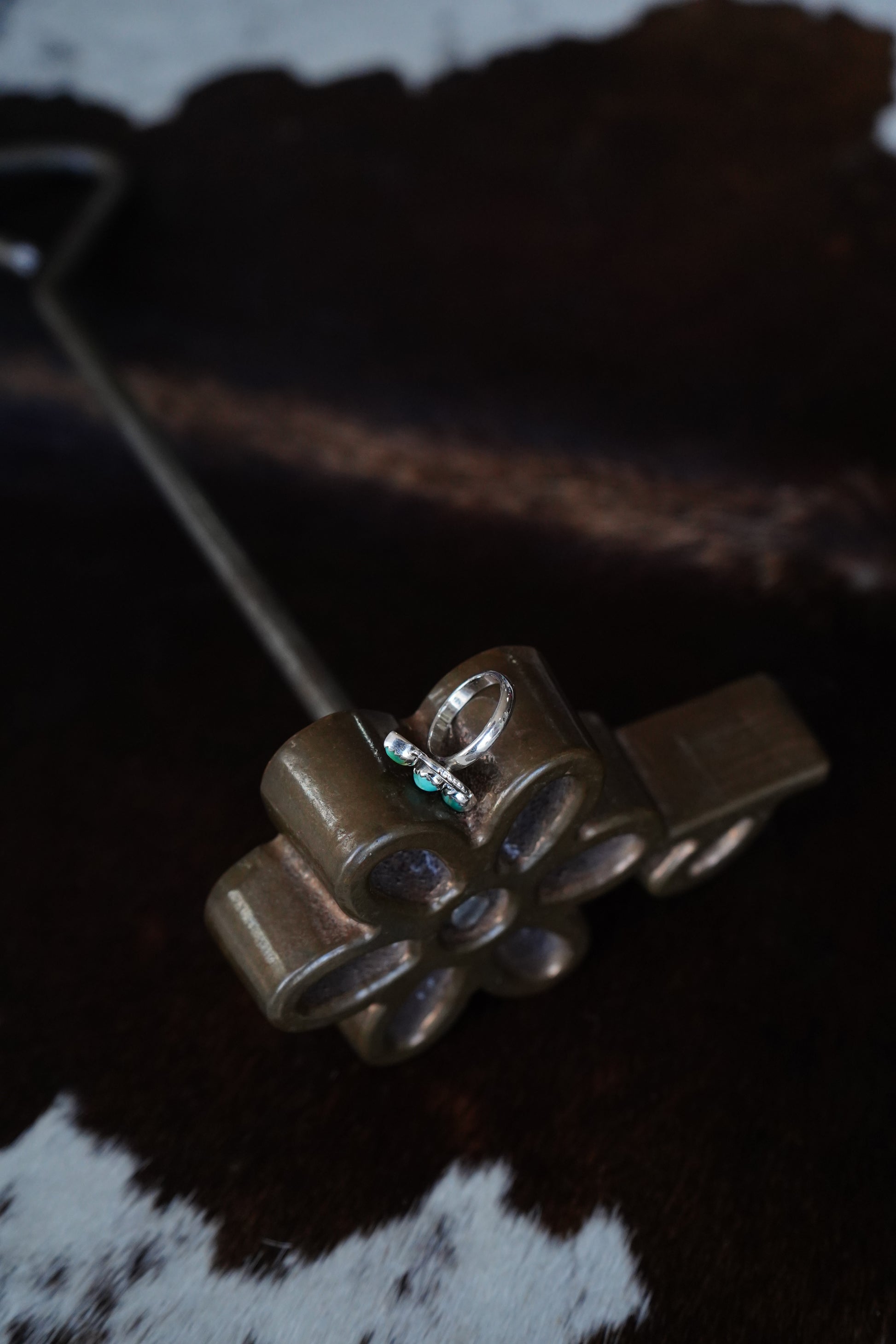 3 Stone Turquoise w/ Feathers Ring - Sz 5.75