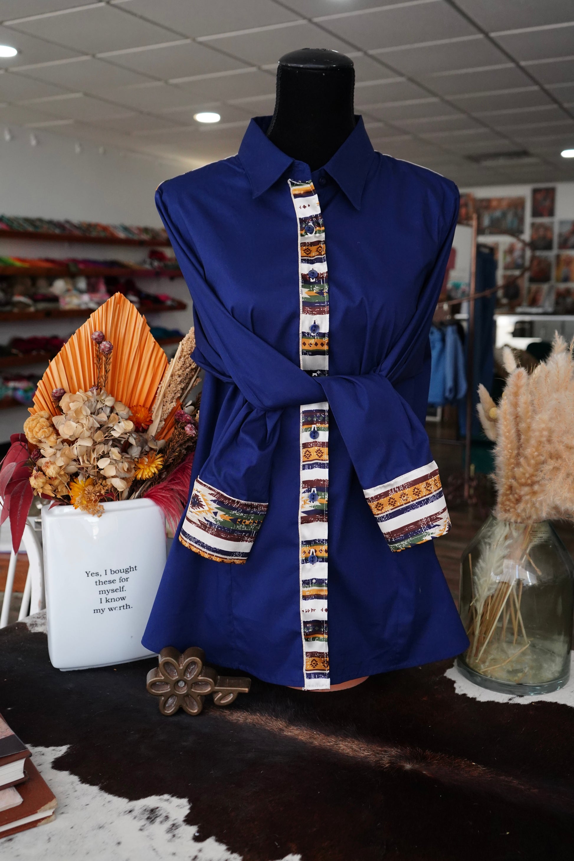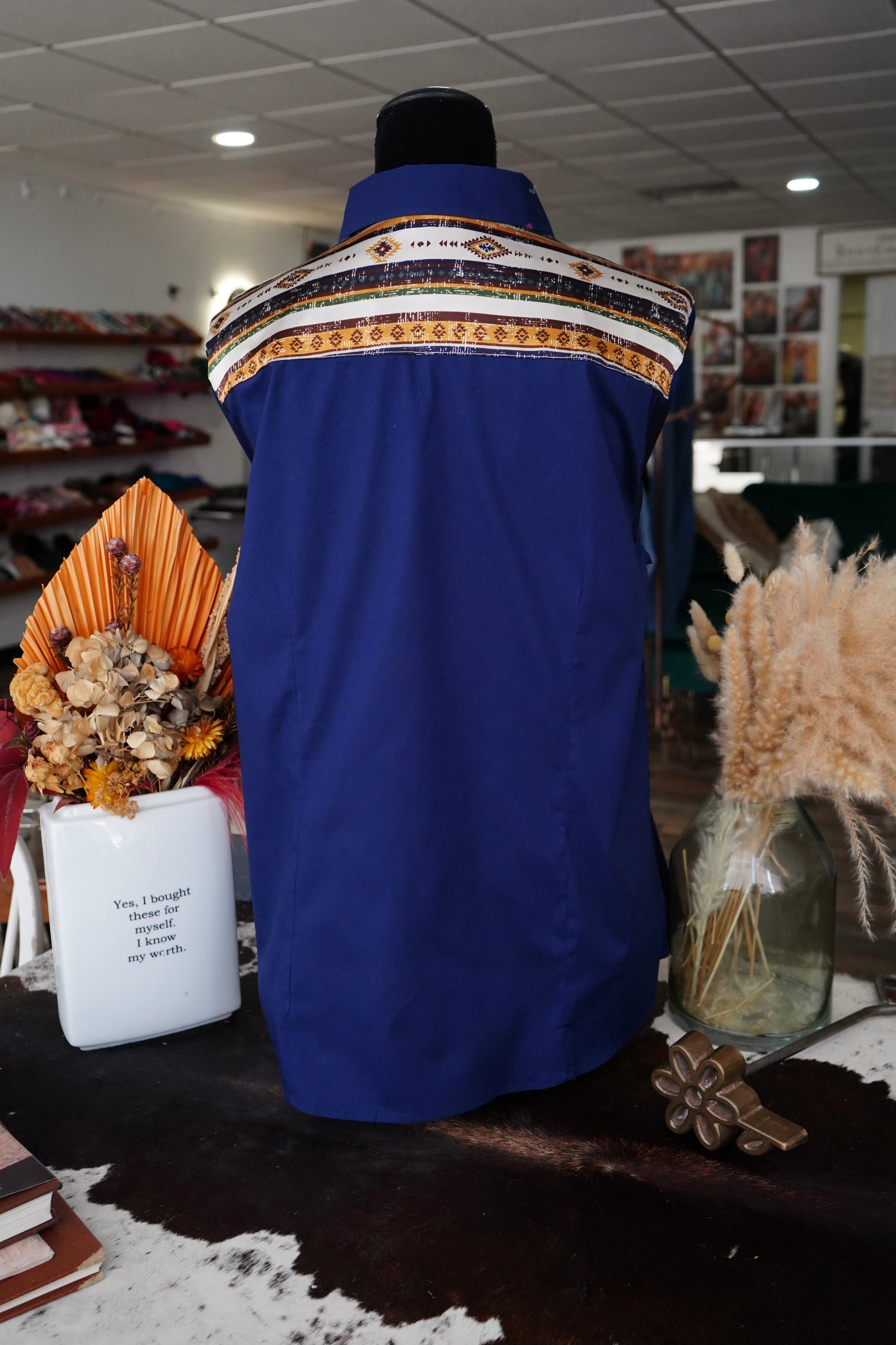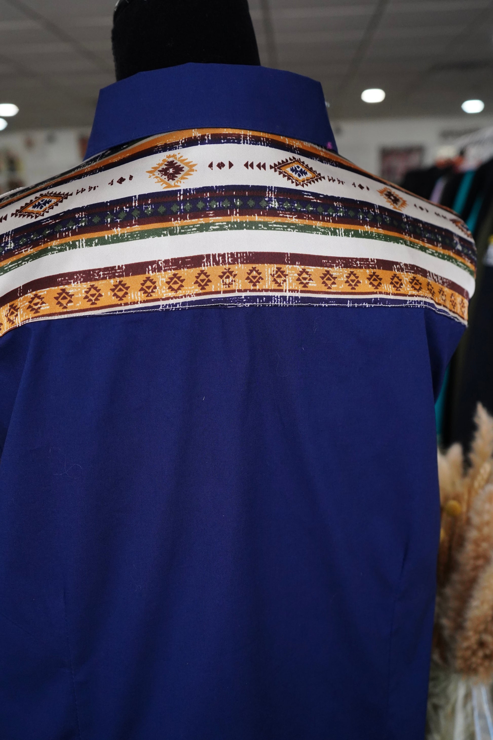 3XL - Navy Cotton w/ Native Stripe Button Down