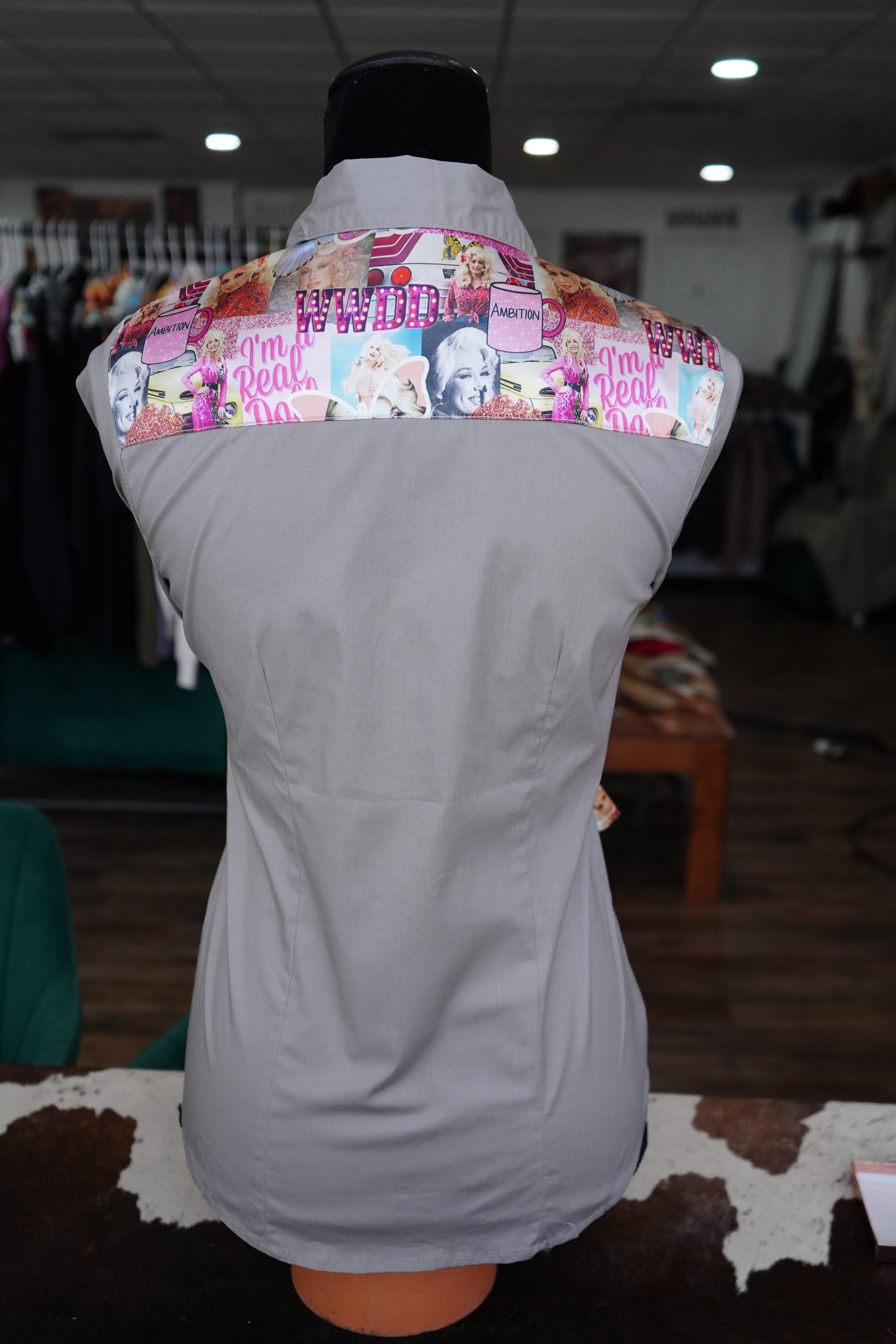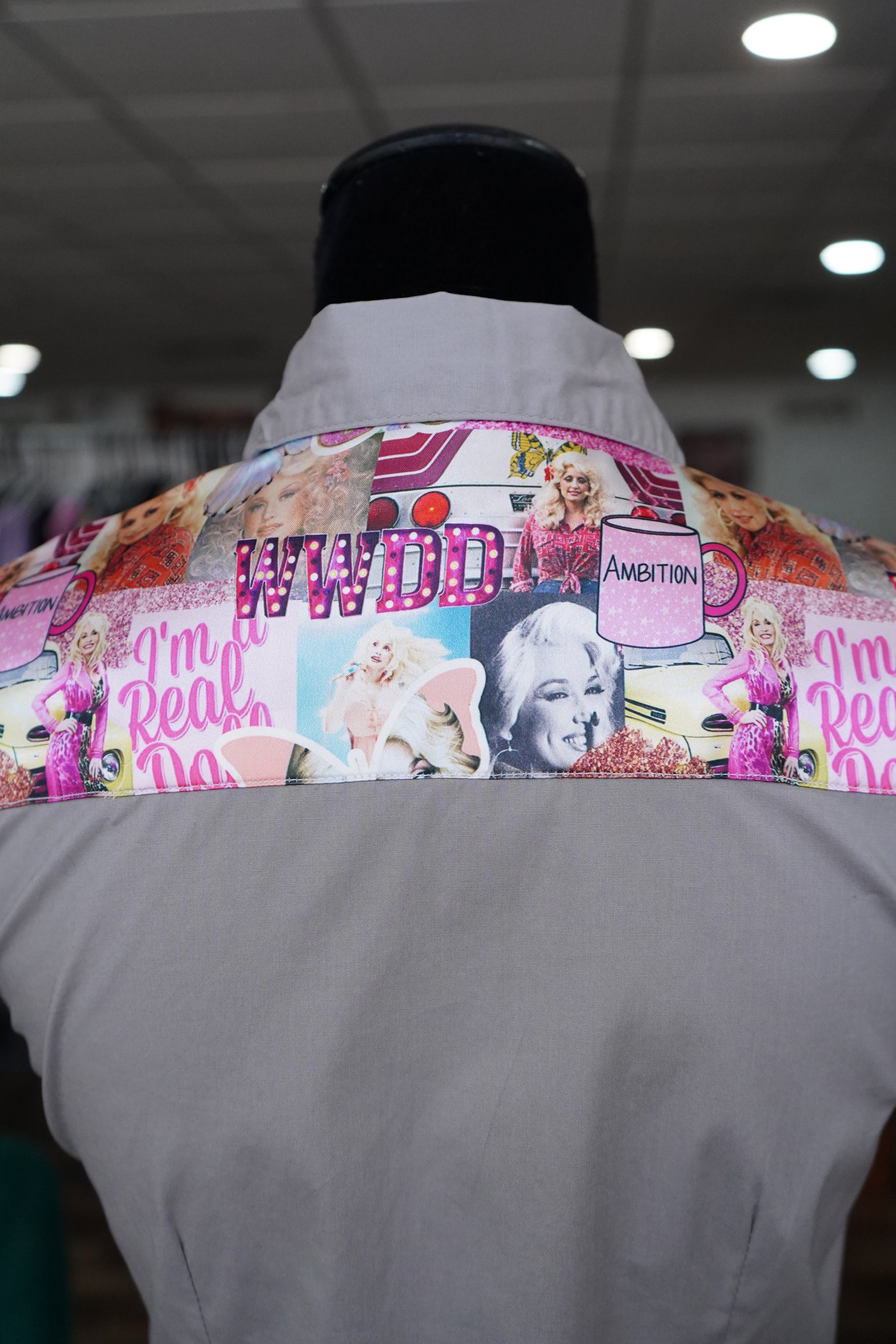 A - Cup Of Ambition on Gray Cotton Button Down