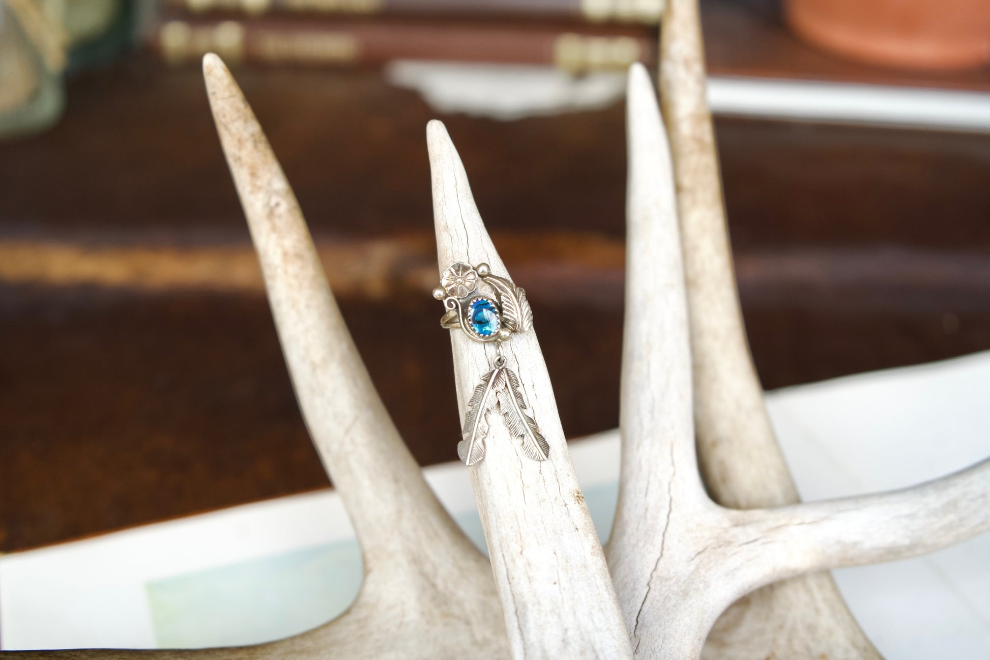 Abalone Sterling Silver Rings with Feather Dangle - Sz 7