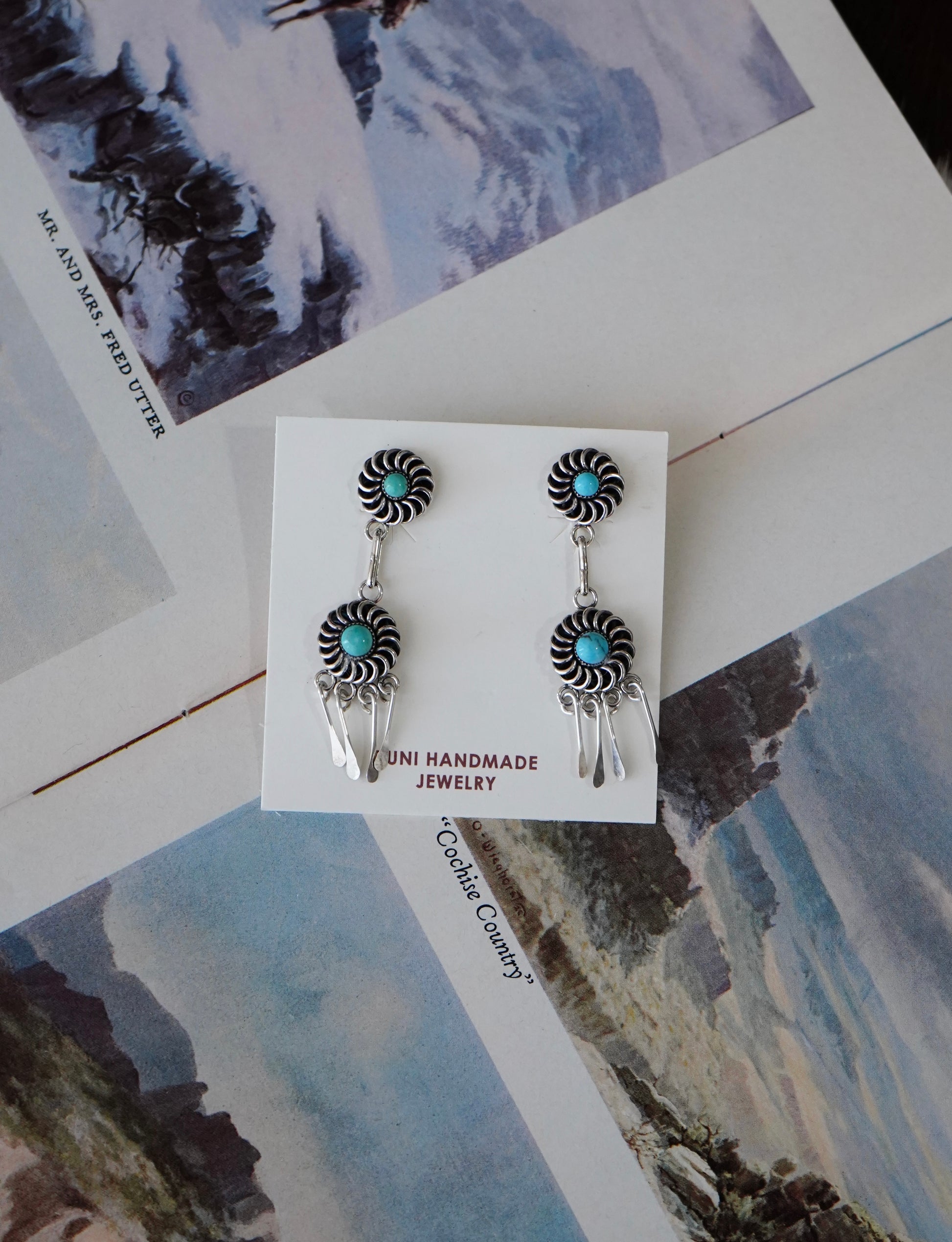 Al Lementino Zuni Turquoise Dangly Stud Earrings