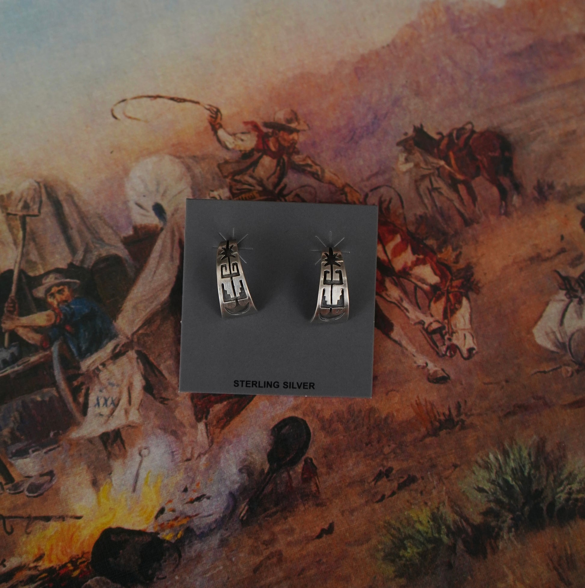 Allen Lee Sterling Silver Stamped Half Hoop Stud Earrings