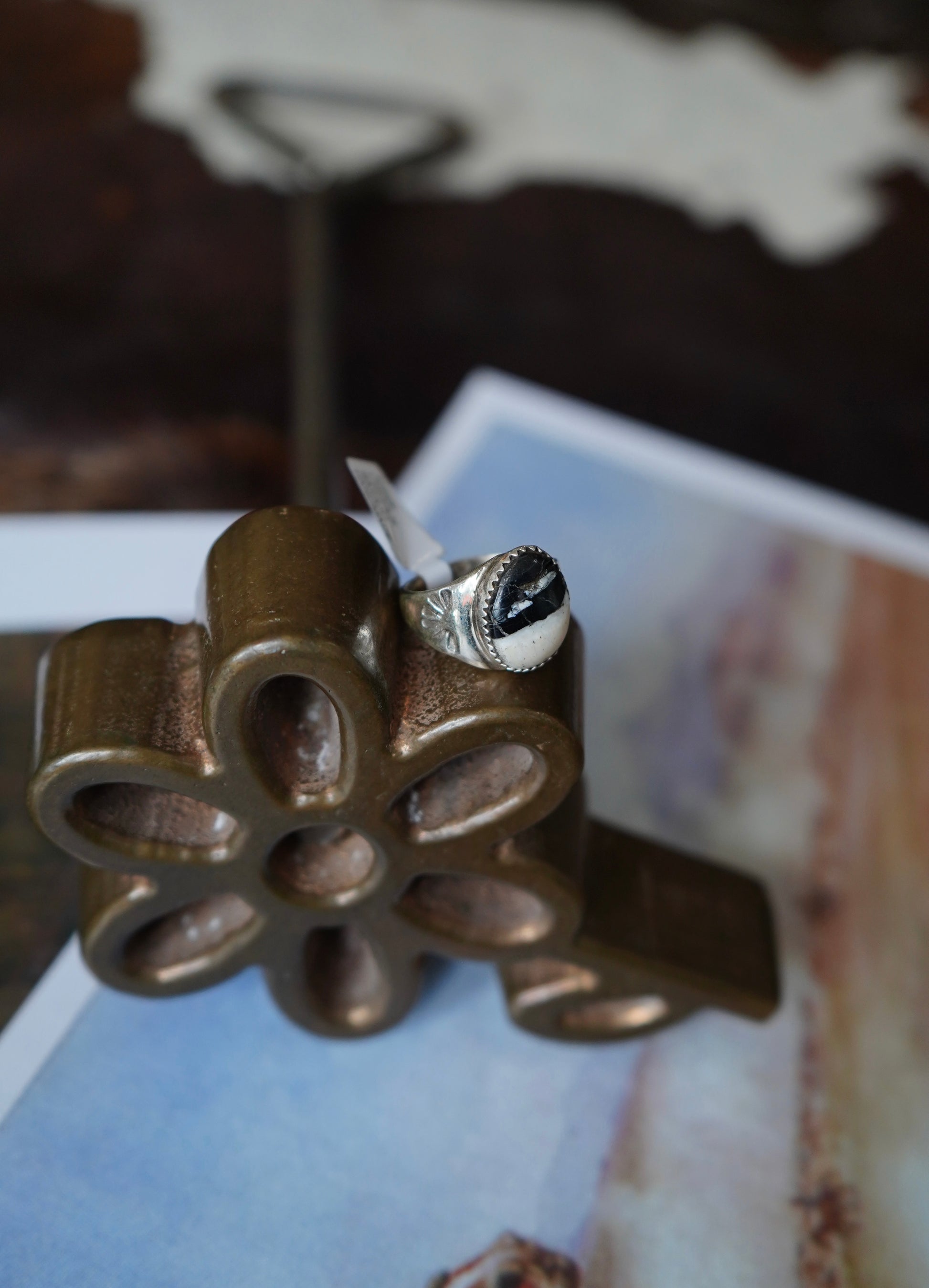 Annie Lincoln Round Stamped Edge White Buffalo Ring - Sz 9.5