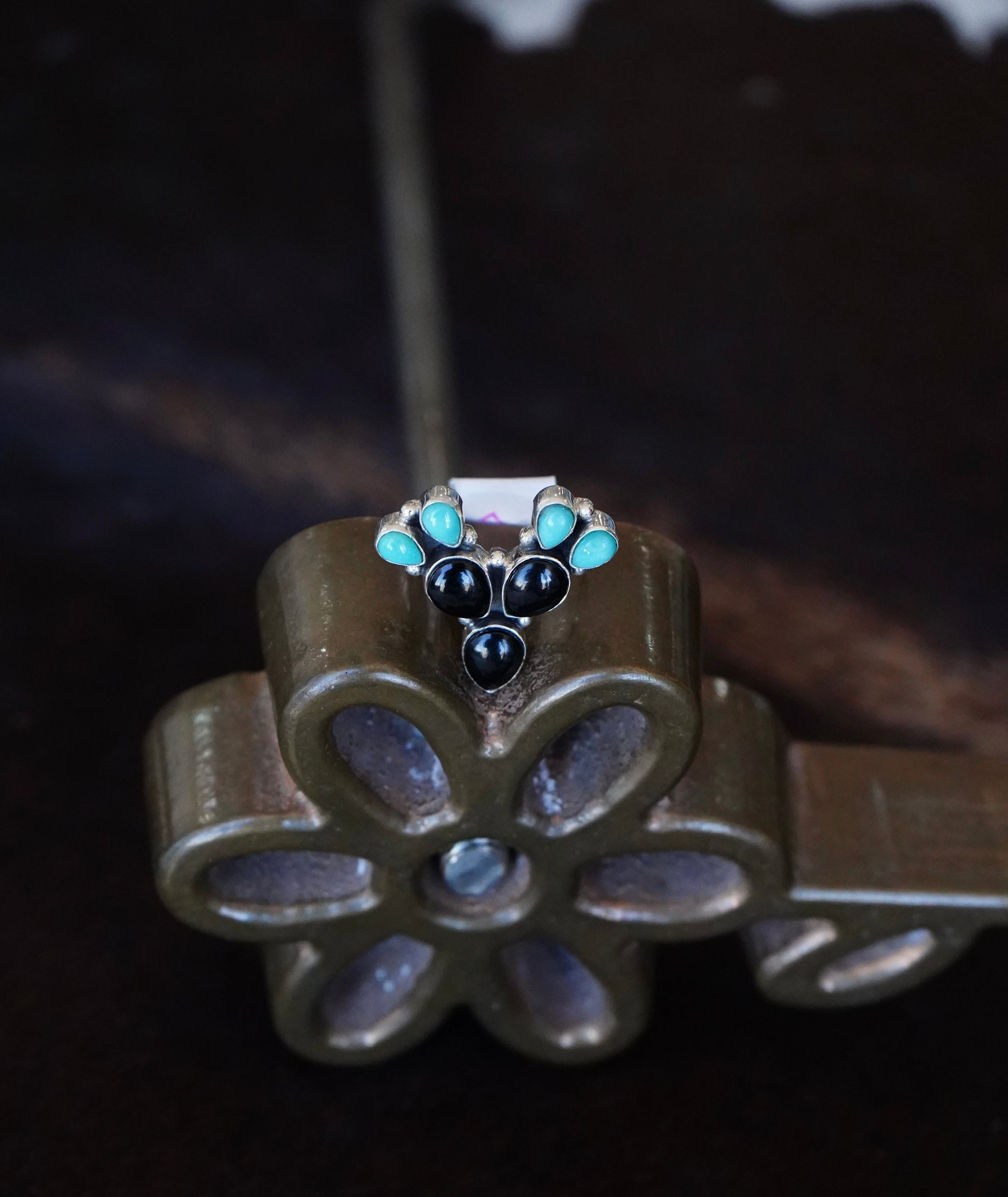 Black Onyx & Turquoise Cactus Ring - Sz 9