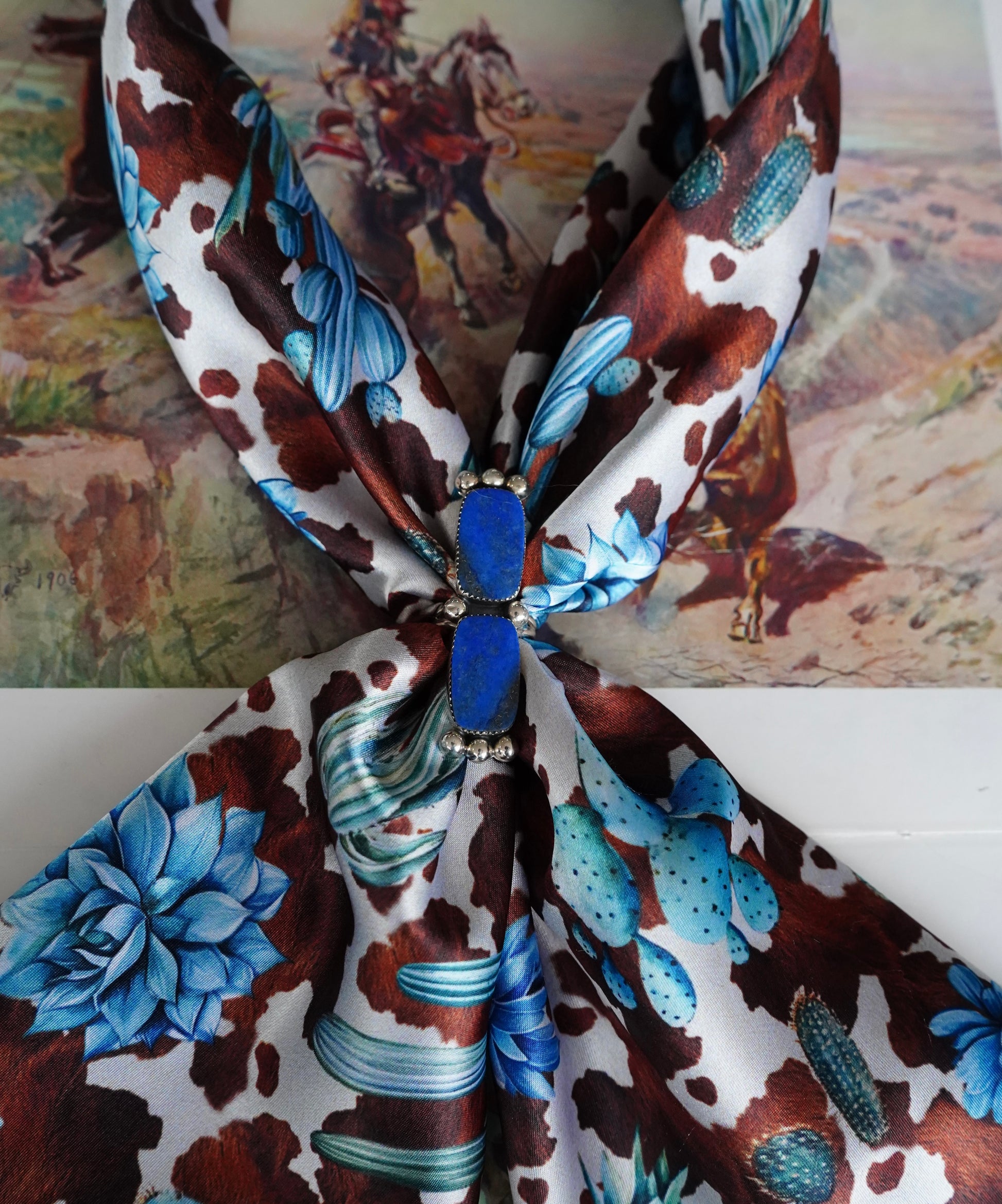 Brown Cowhide w/ Blue Succulents