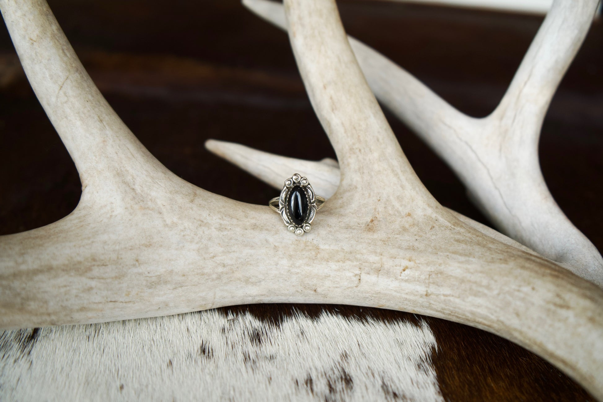 Dainty Vintage Black Onyx Oval Ring Sz. 8