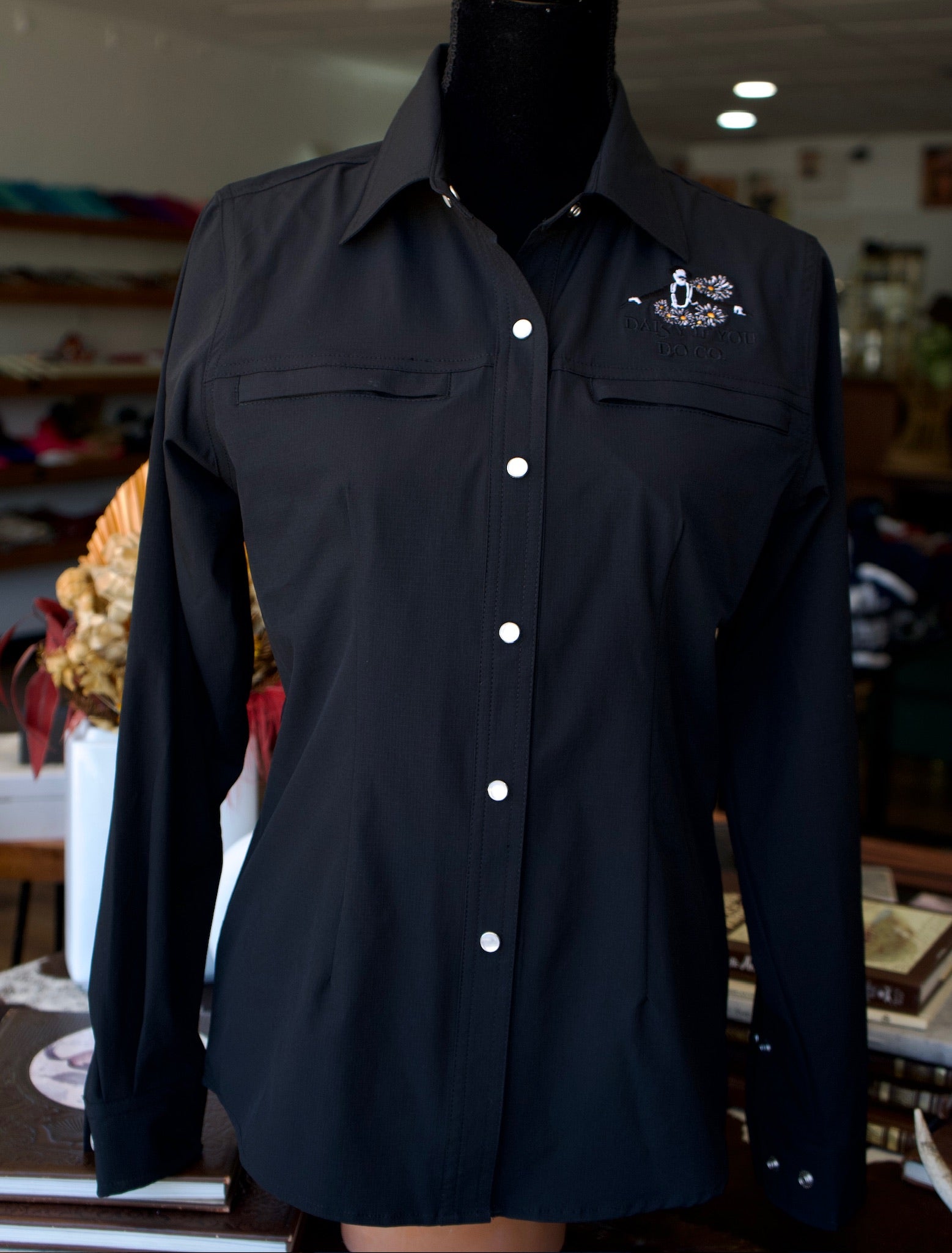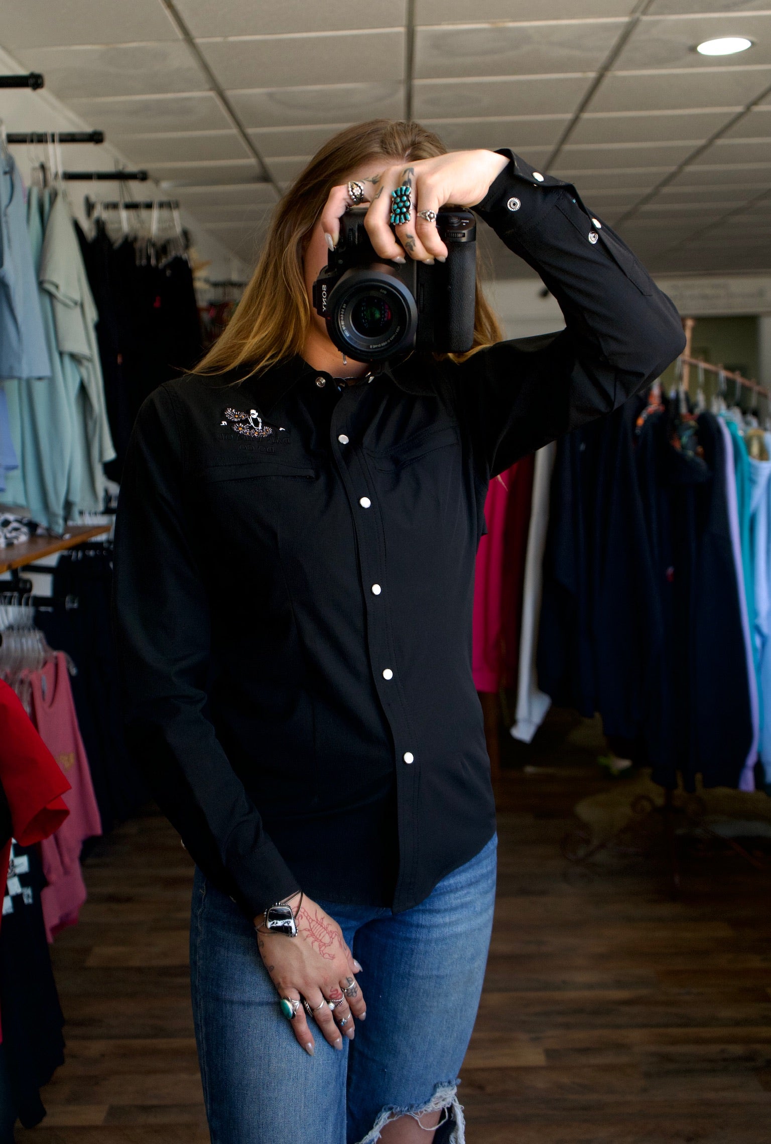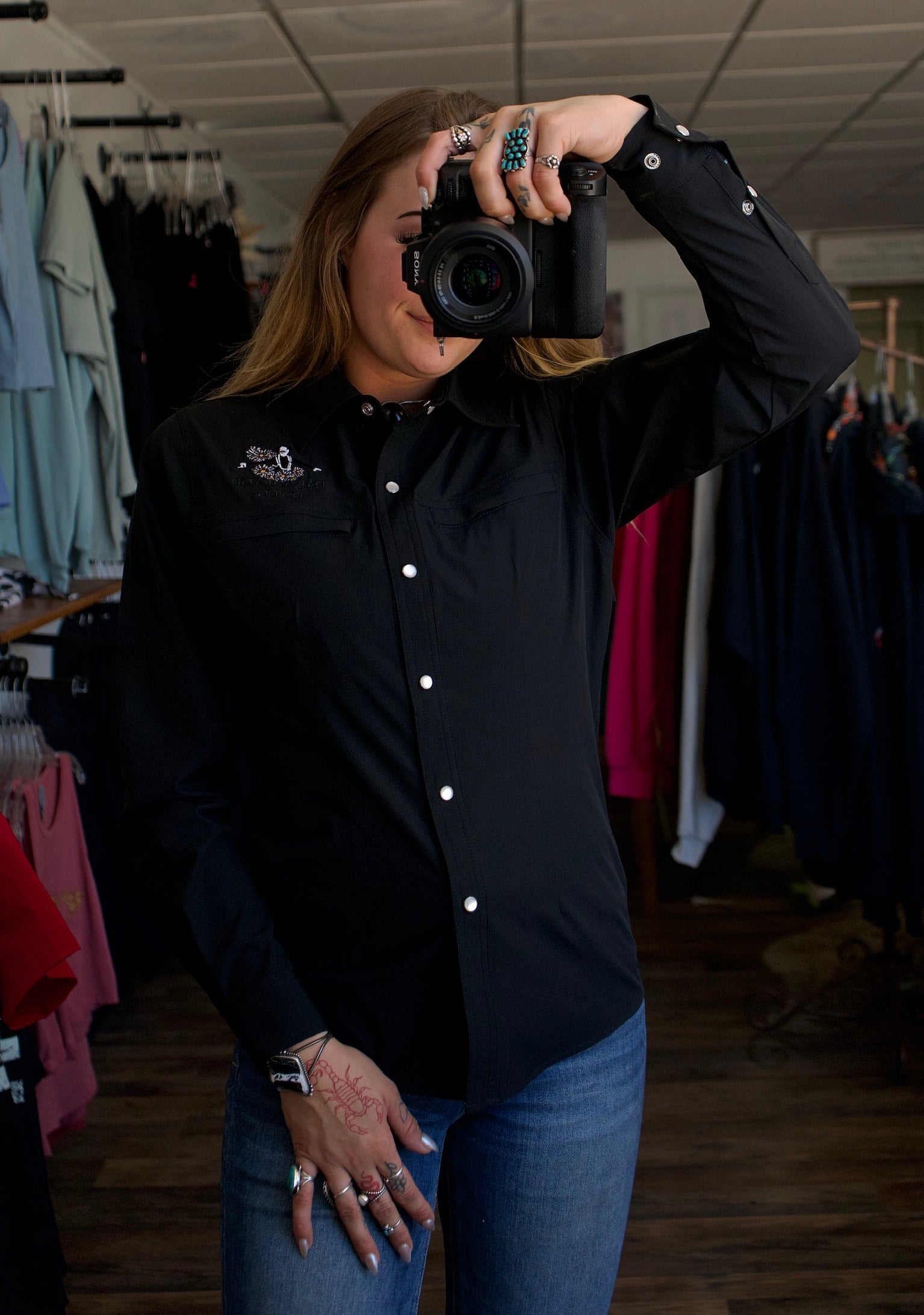 Daisy Gang Fishing Shirt Pearl Snaps - Black Long Sleeves
