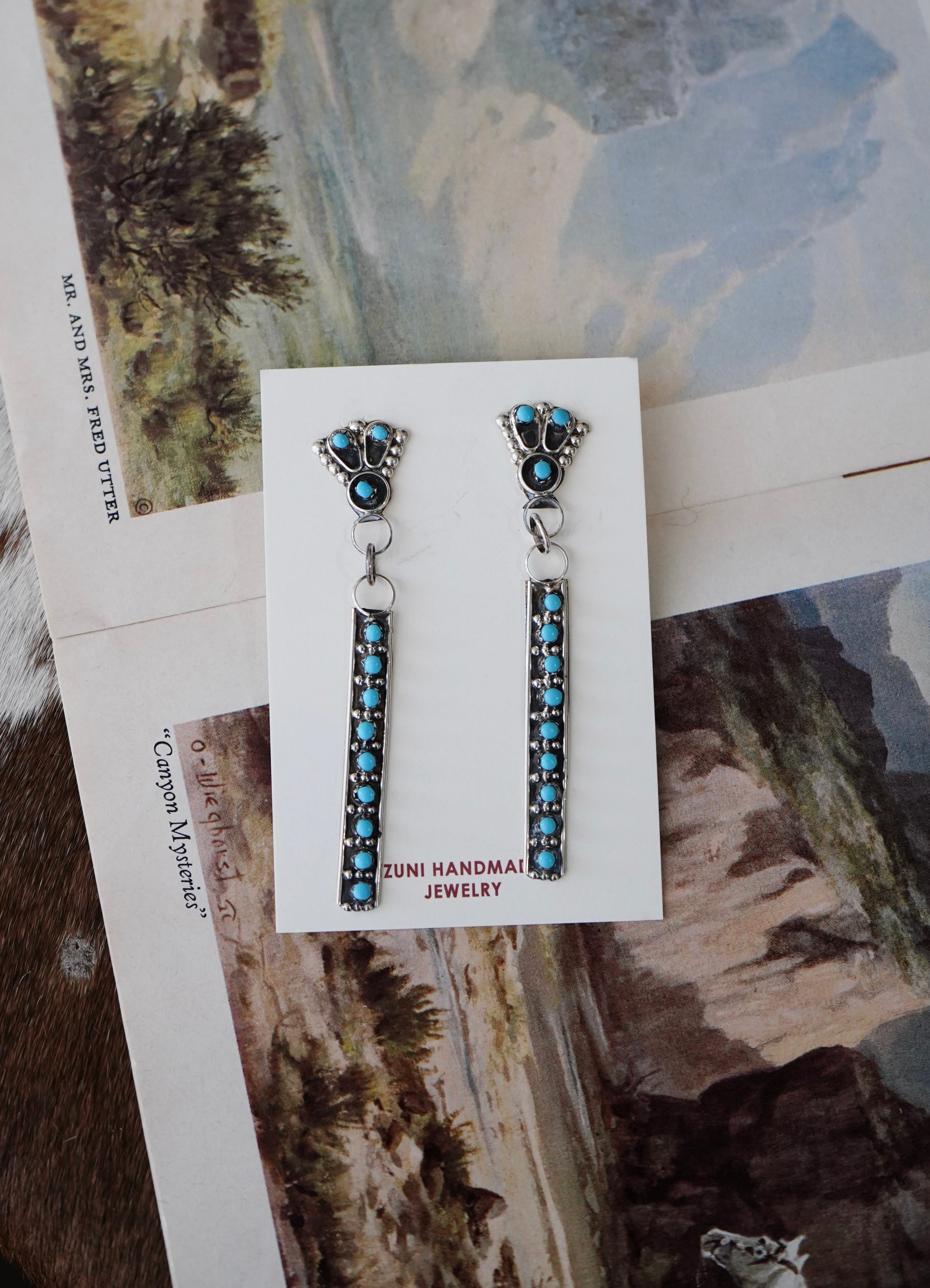 Davis Kaamasee Zuni Turquoise Bar Dangly Stud Earrings