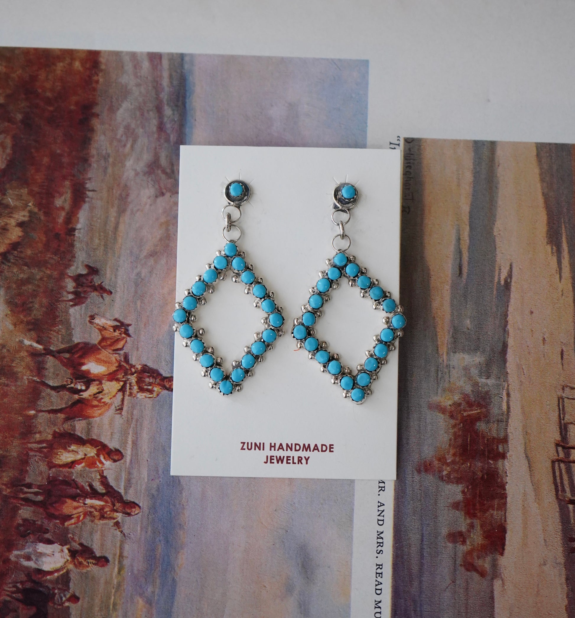 Davis Kaamasee Zuni Turquoise Dangly Diamond Stud Earrings