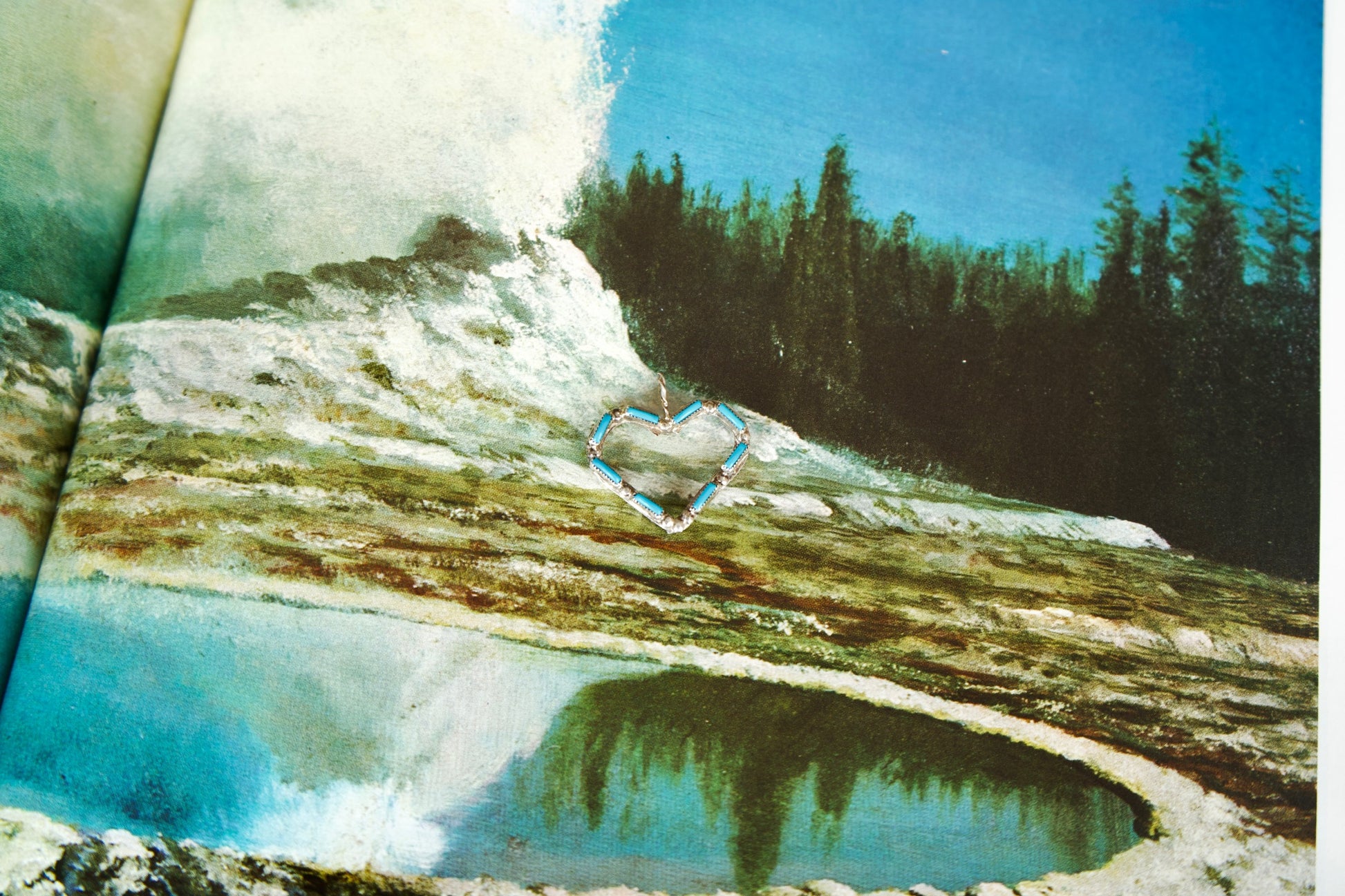 Double Sided Turquoise & Red Coral Zuni Heart Pendant