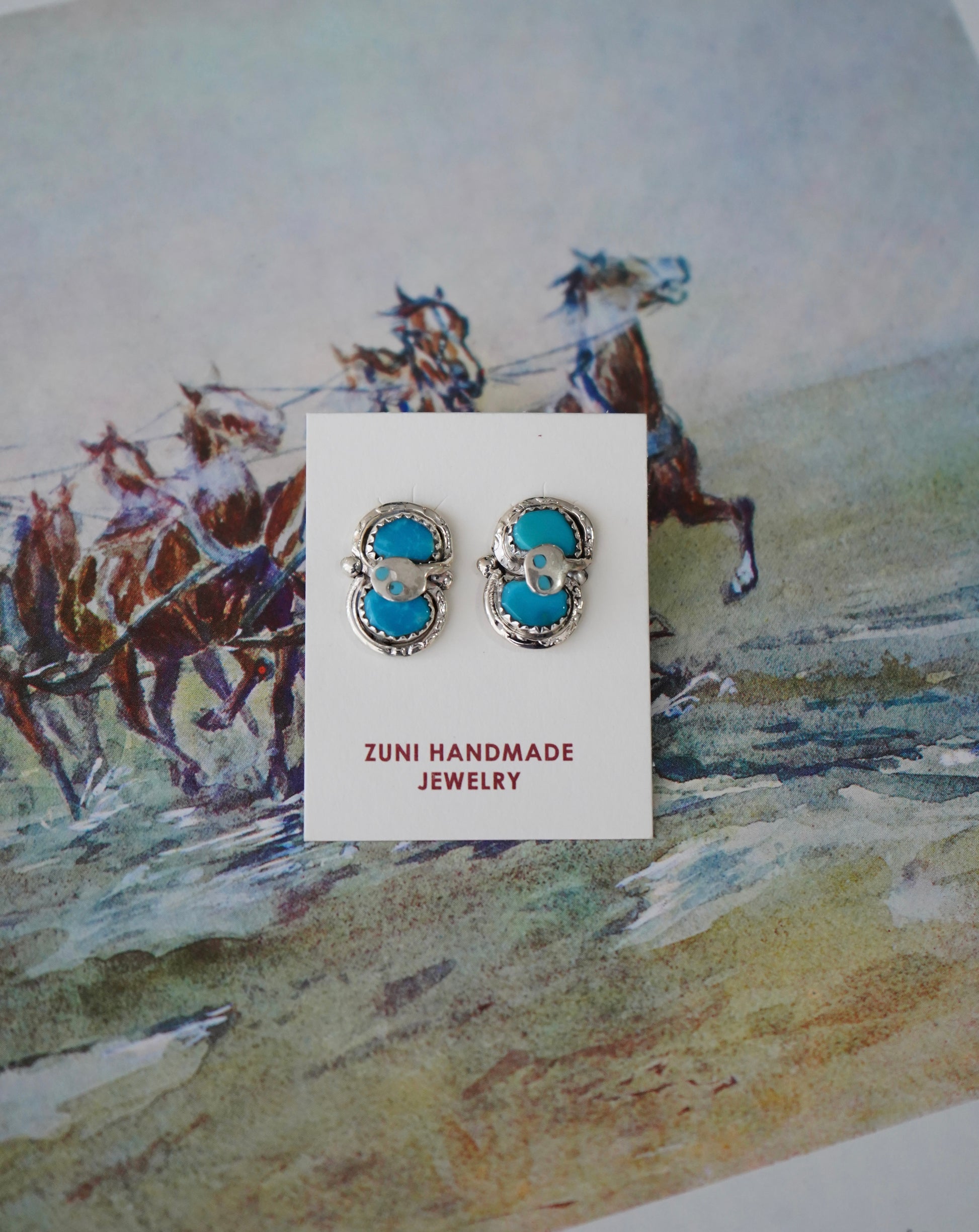 Effie Calavaza Zuni Turquoise Snake Stud Earrings