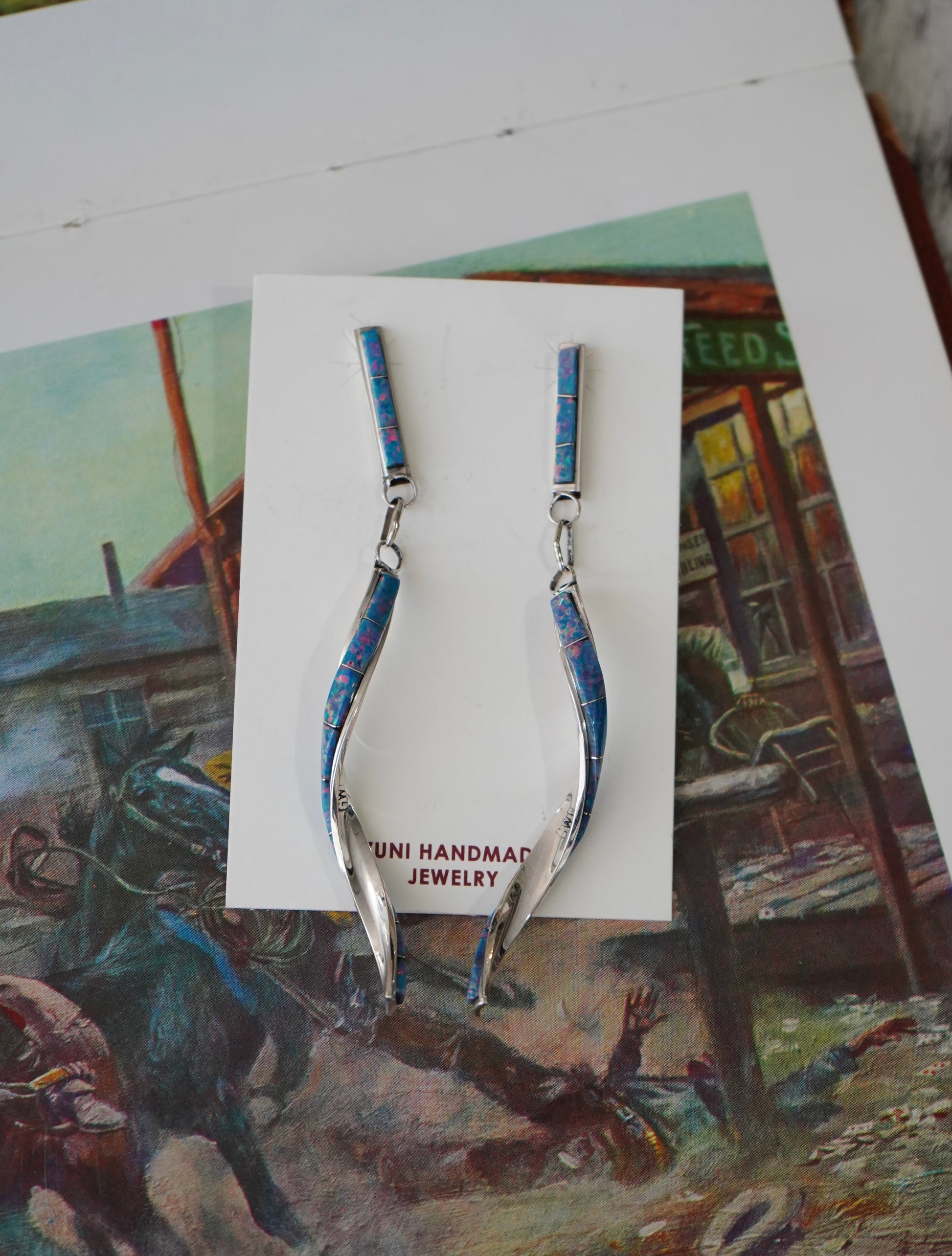 Gloria Waseta Zuni Inlay Blue Opal Twirly Stud Earrings