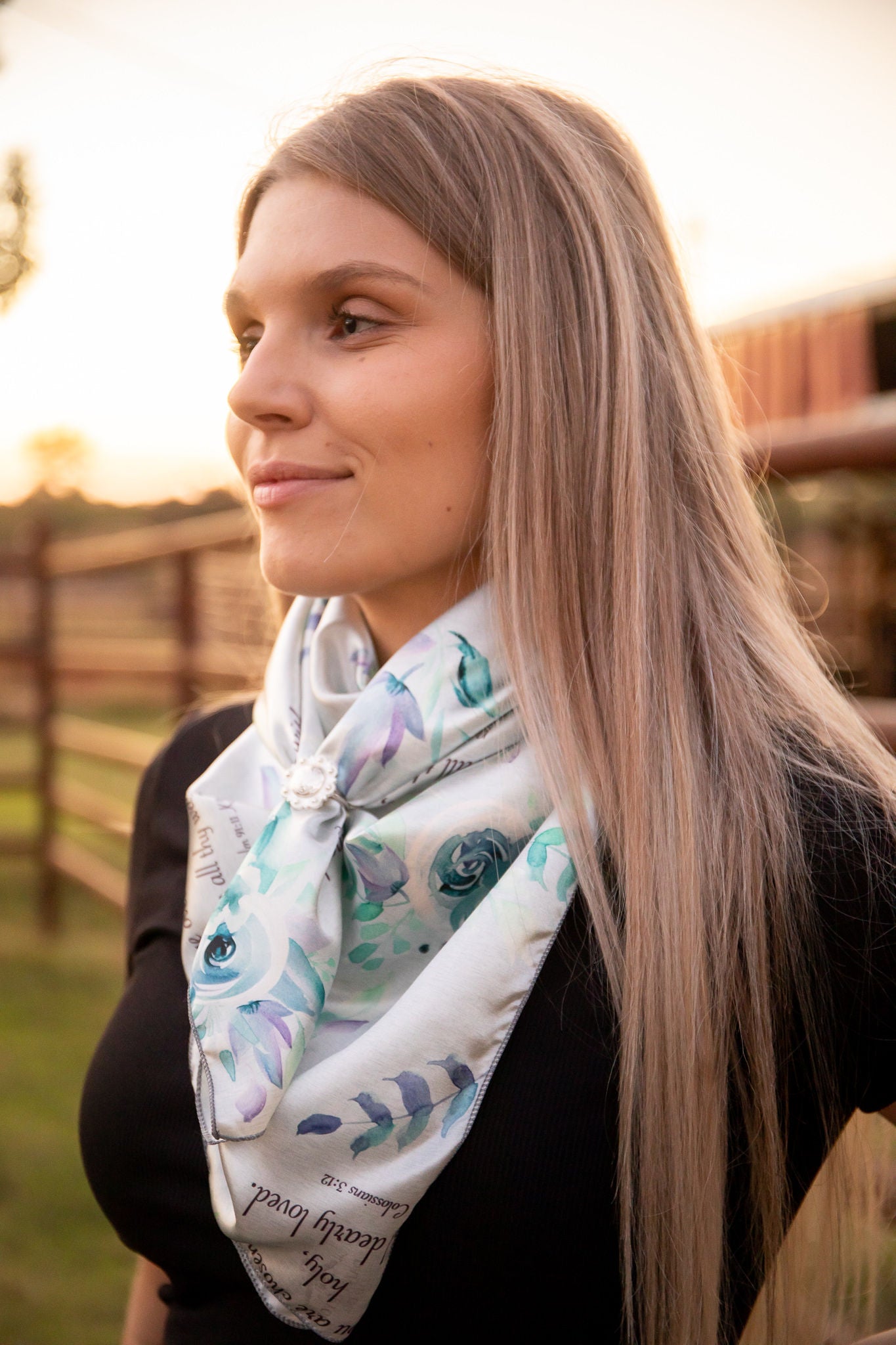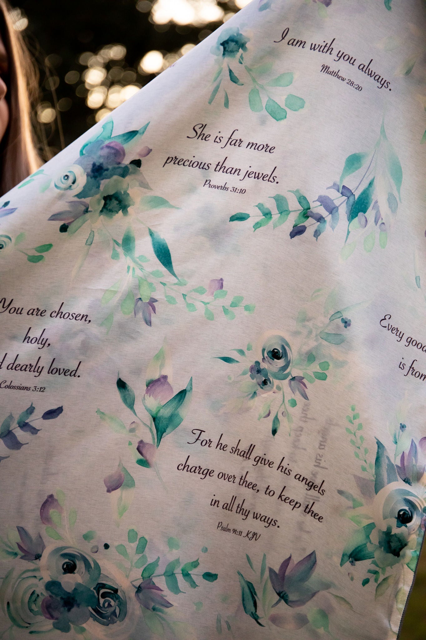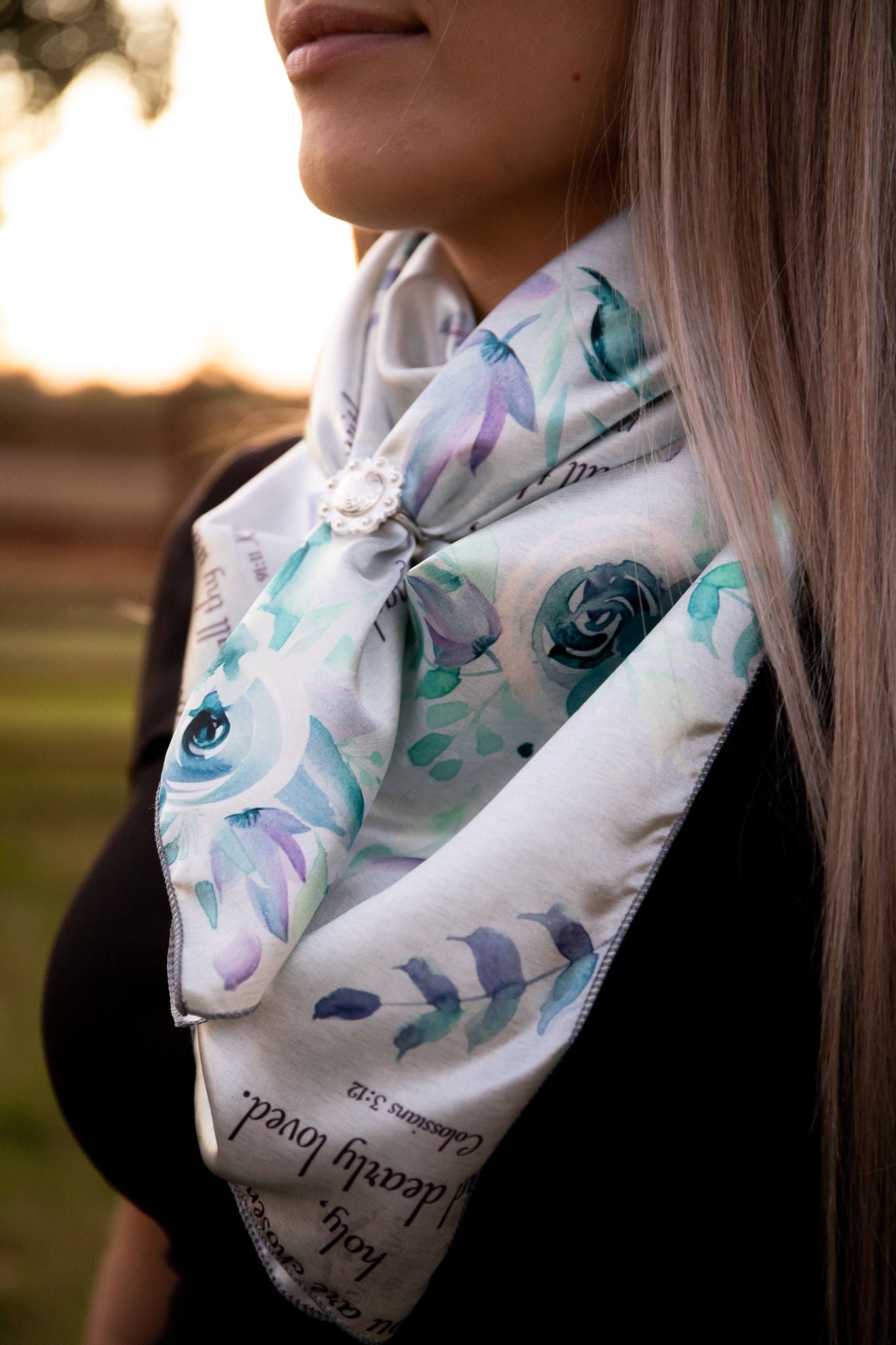 Gray with Blue Roses and Bible Verses Wild Rag