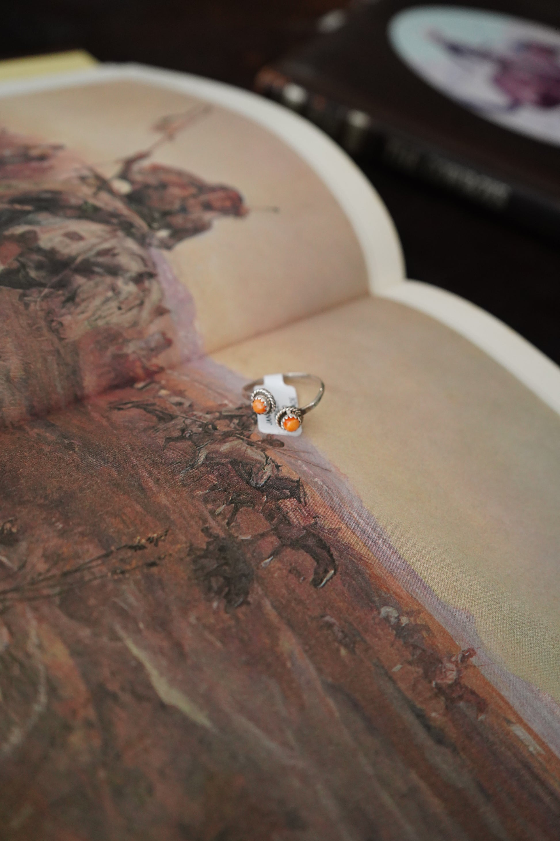 Janice Spencer Orange Spiny 2 Stone Ring - Adj