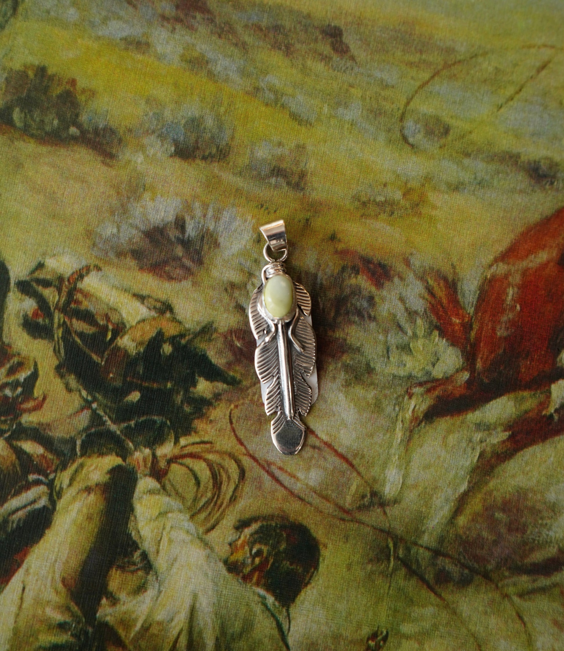 Jeremy Delgarito Palomino Turquoise Feather Pendant