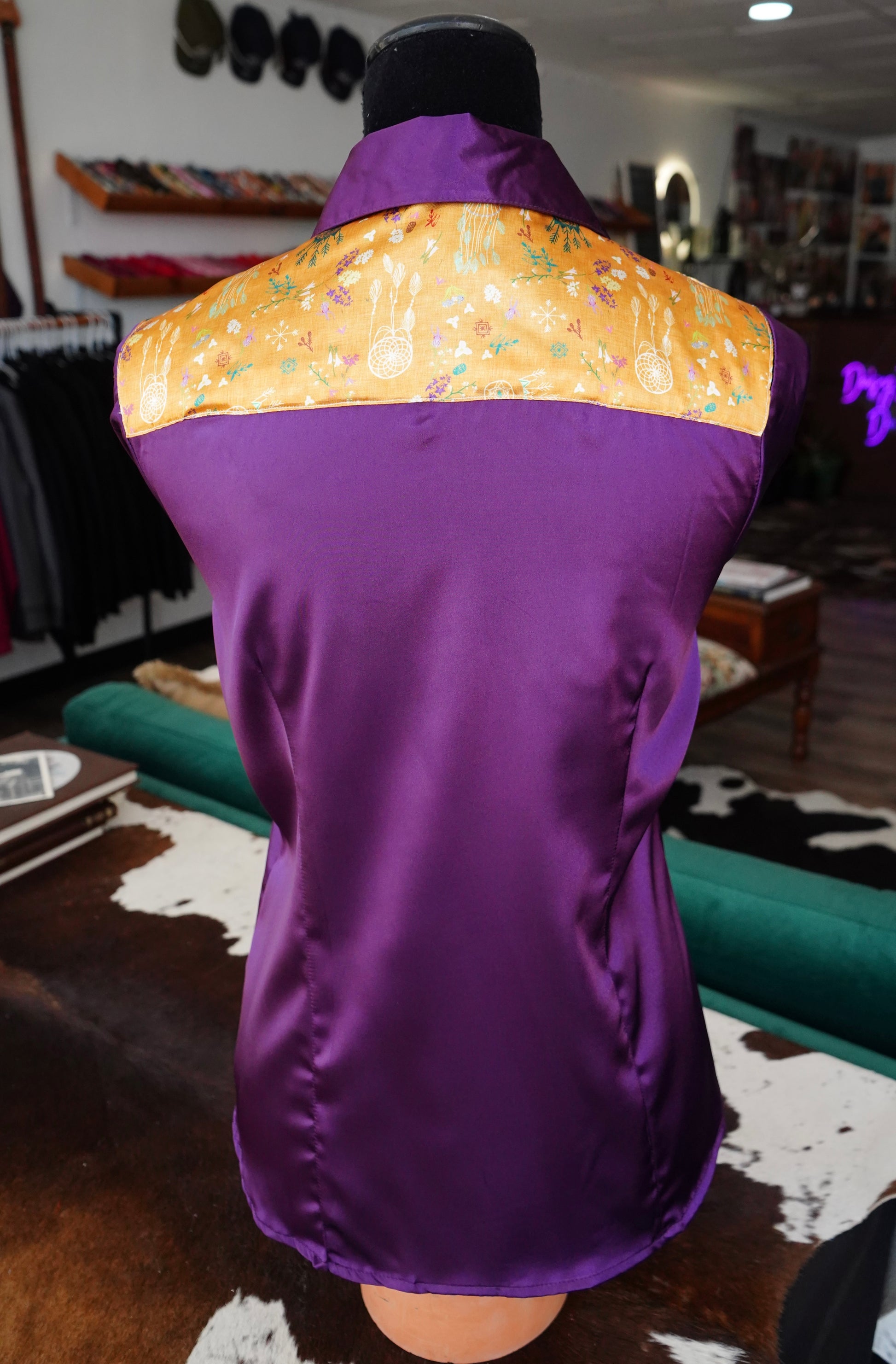 L - Mustard Dreamcatchers on Purple Satin Button Down